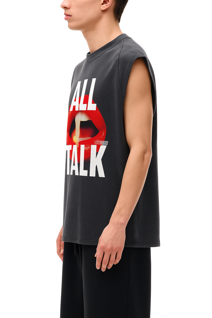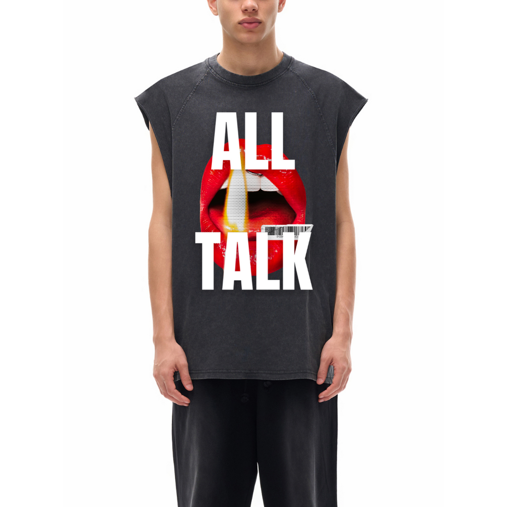 All Talk Oversized Streetwear Tank. Exclusive Print for Hyperfiction designed by Miss Em. Made to order. We are about the hype not the waste.